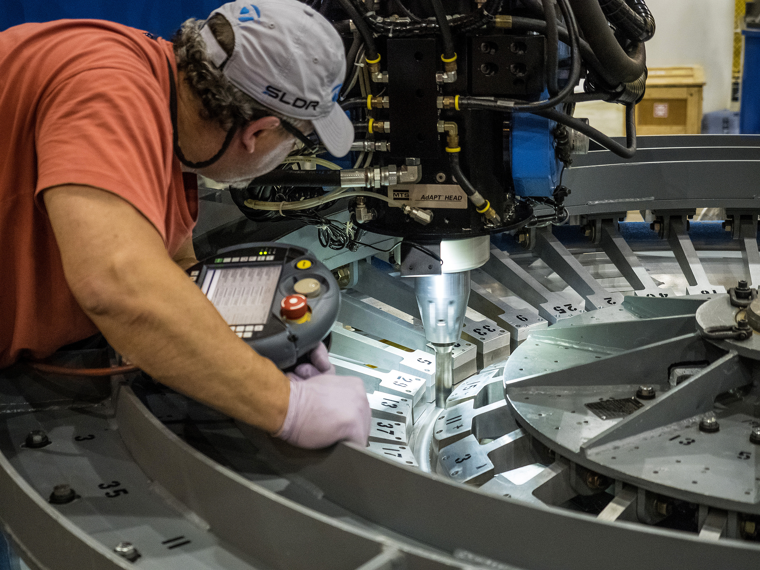 Lockheed Martin Engineers at NASA’s Michoud Assembly Facility in New Orleans, Louisiana, perform the first weld on the Orion pressure vessel for Exploration Mission 1. This is the third pressure Orion pressure vessel built. Engineers continue to refine the design reducing the number of welds from 33 on the first pressure vessel to 7 on the current one, saving 700 pounds of mass.